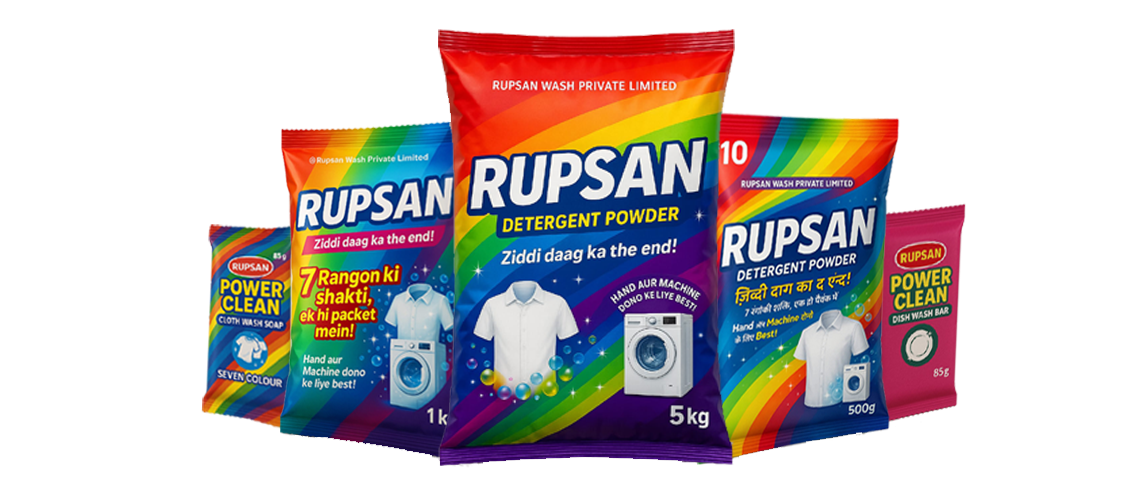 At Rupsan, we craft premium-quality cleaning products including detergent powders, dish wash soaps, and cloth wash solutions. Each product is made using carefully selected natural ingredients combined with modern cleaning technology, ensuring effective results while being gentle on your hands, clothes, and the environment. Our commitment is to deliver freshness, safety, and eco-friendly care in every wash.